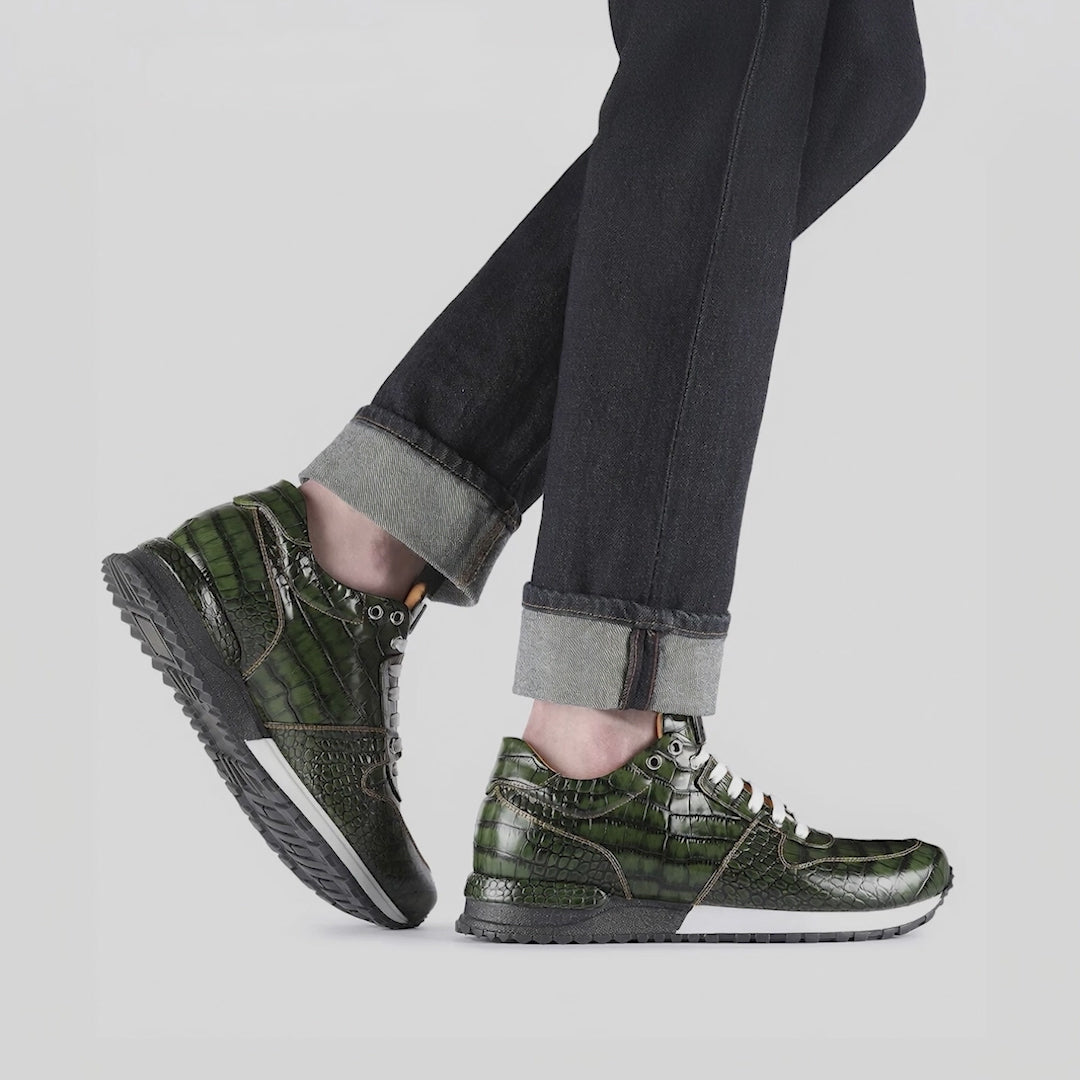 Зеленые кроссовки с крокодиловым принтом