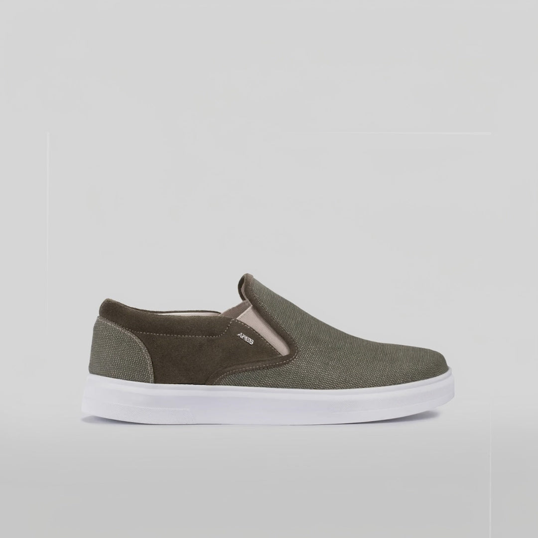 Созданные для универсальности, наши мужские слипоны из льняной ткани цвета хаки сочетают в себе утончённость и повседневный стиль. Благодаря верху из замшевой кожи и дышащему материалу эти слипоны цвета хаки обеспечивают отличный комфорт и долговечность. Серебристый логотип ARMOS добавляет ненавязчивый штрих изысканности, а плетёные эластичные боковые вставки гарантируют плотную, но гибкую посадку. Оттенок «хаки» придаёт этим слипонам модный акцент, а белая резиновая подошва повышает их долговечность. Эти мужские слипоны цвета хаки — идеальный выбор для сдержанной элегантности в расслабленном стиле.